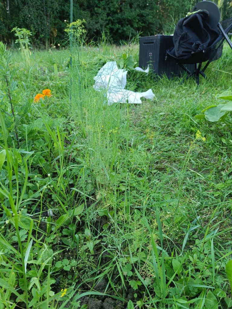 Kurpitsan lisäksi kasvaa myös tilli. Kun oikein tarkasti katselee.