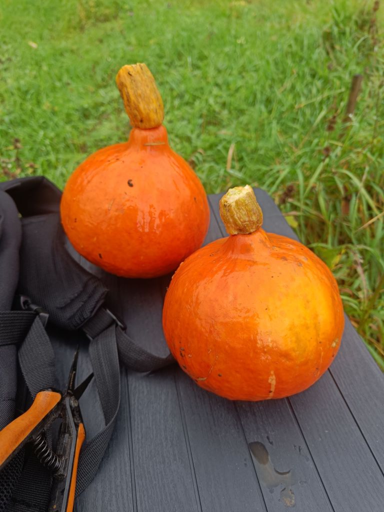 Hokkaidot alkoivat näyttää siltä, että ne voisivat muuttaa kerrostaloon loppusäilytykseen. Taas luettiin intenettiä että mistä ihmeestä ne pitää köynnöksestään katkaista ja ei tultu hullua hurskaammaksi.