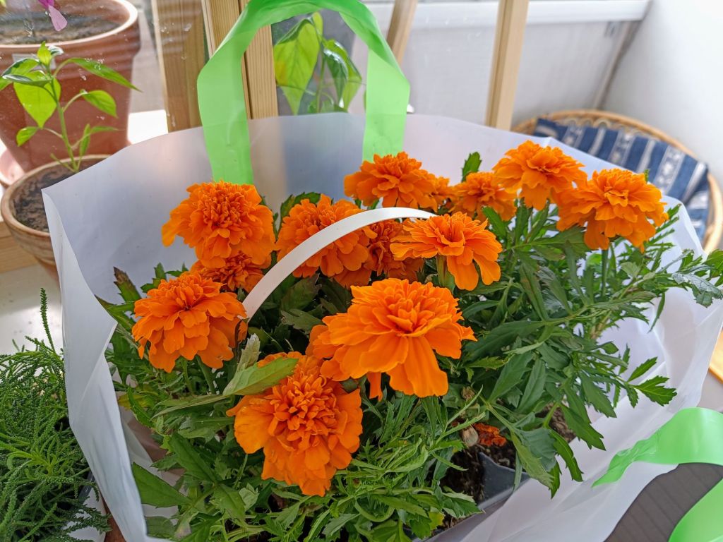 Pari samettikukkaa Palstalla on muuttunut viherkasviksi, joten ei kun lisää vaan. Nyt eri väriä.