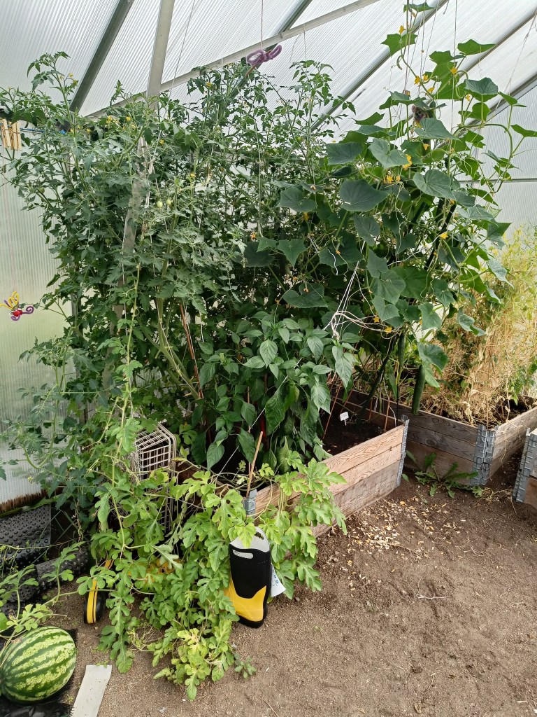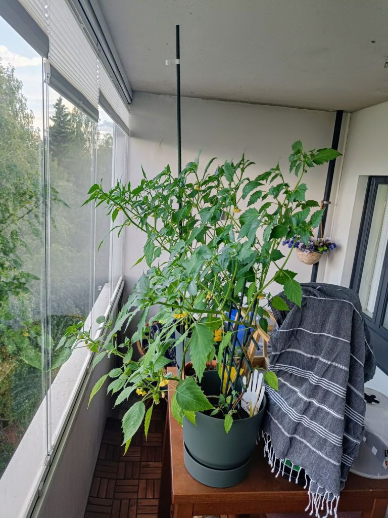 Viime vuonna kasvattelin tomaatteja Piparmintun kasvihuoneessa. Tänä vuonna kasvattelen tomatilloa parvekkeella.