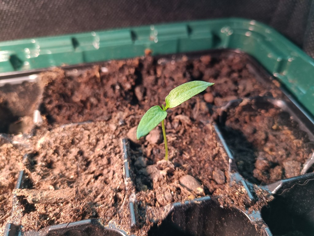 Aiemmin tuossa pistettiin padronpaprikan siemeniä itämään, kun sellaisia tuli Prisman siemenhyllyssä vastaan. Vähän säännöstelin ja kylvin vain neljä, ja niistä tulikin neljä hienoa alkua. Ikävä kyllä lyhyellä ulkoilukerralla parvekkeella kolme neljästä edesmeni ja sitten viimeinenkin ylikasteltiin.