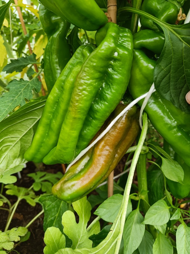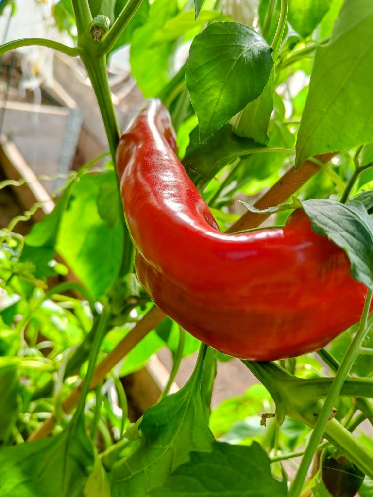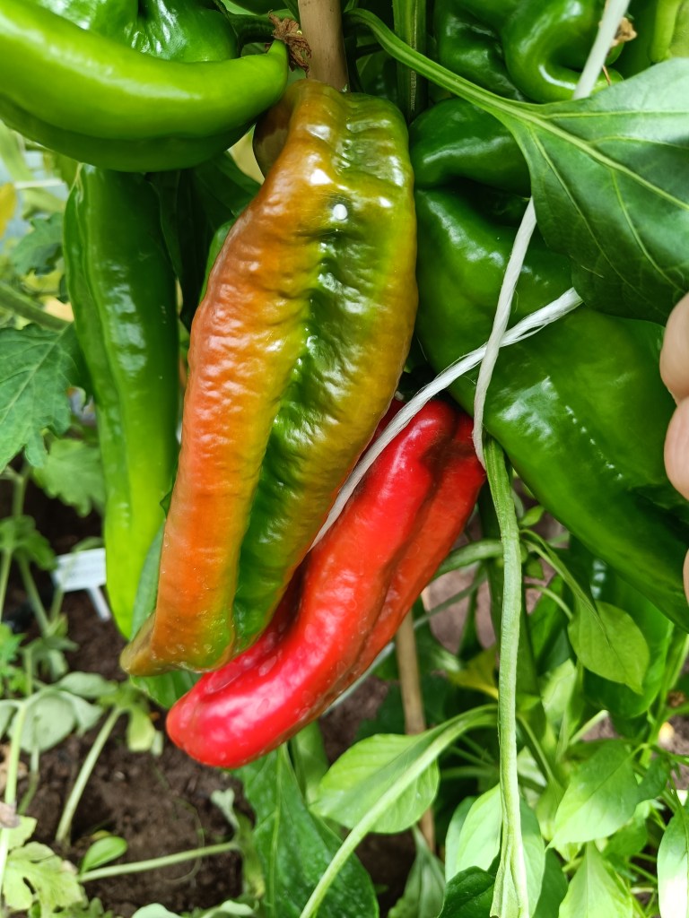 Sen jälkeen onkin sitten kysytty lukemattoman monia kertoja, että joko paprikat voi kerätä. Siirtolapuutarhailija kertoi kuitenkin, että paprikalla kestää kauan muuttua punaiseksi ja ensimmäisten punaisten sävyjen ilmestyttyäkin kestää vielä kauan. No ei sitten kuin odotellaan.