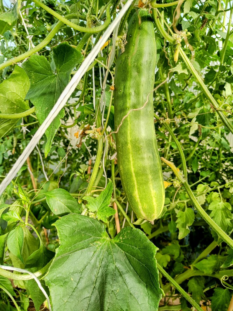 Kurkkuviidakosta napsin pois alemmat lehdet – niin pitkältä kuin yletin – koska näin ainakin yhden nettiartikkelin mukaan pitäisi tehdä. Ilmeisesti jo aiemmin eikä tässä vaiheessa.