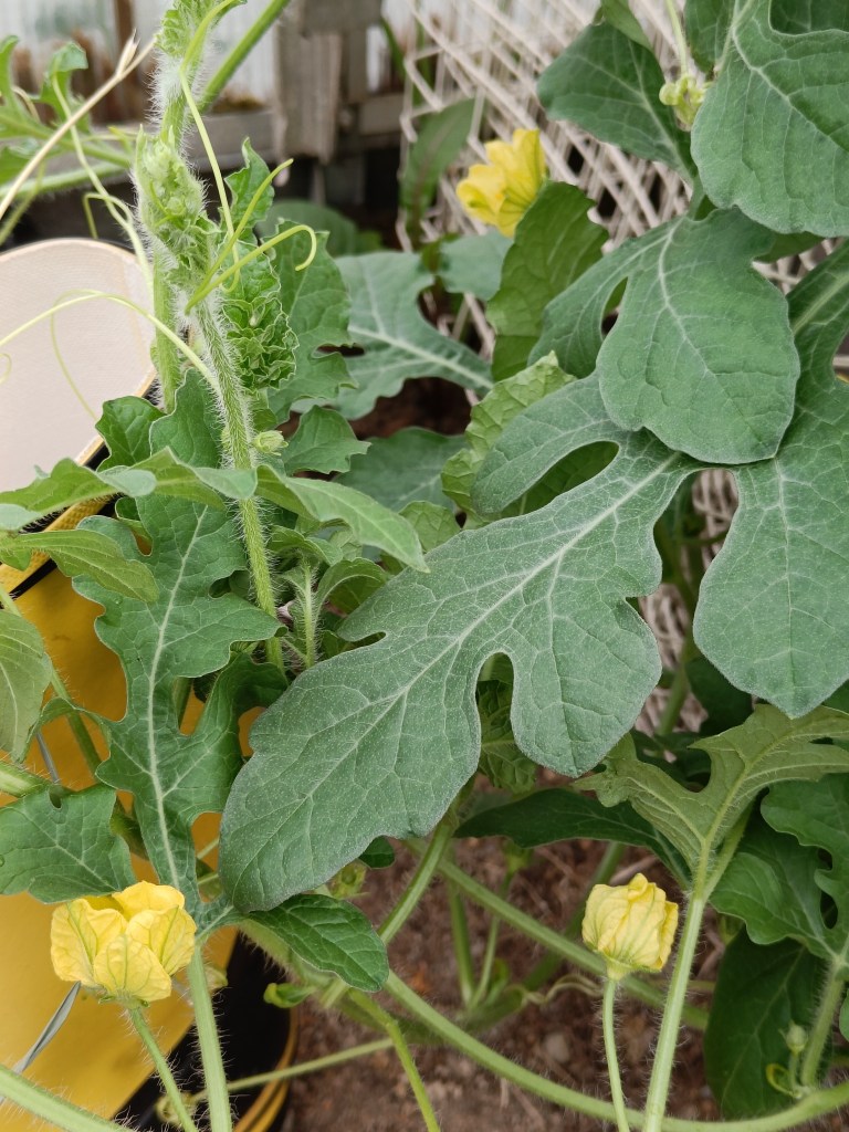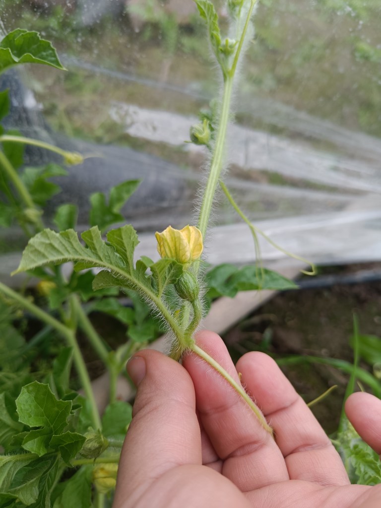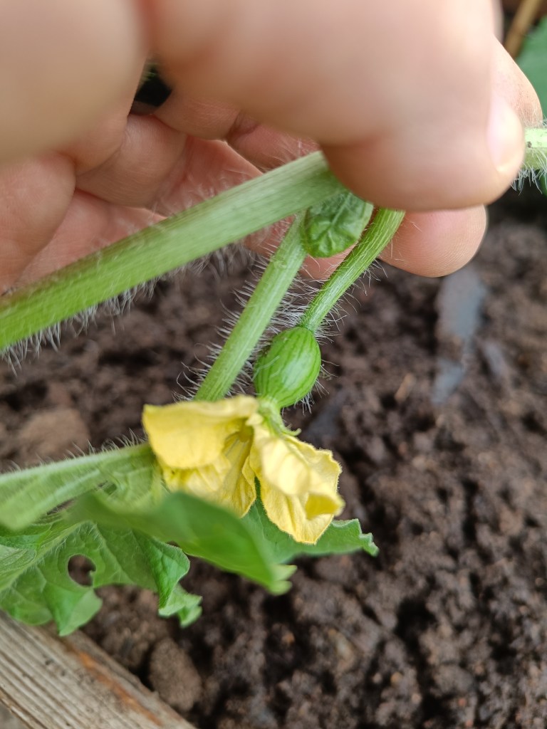 Google oli ystävämme, ja kertoi että melonissa on kahdenlaisia kukkia ja molempia tarvitaan, jos haluaa melonin. YouTube kertoi sitten, kumpi on hede- ja kumpi on emikukka.