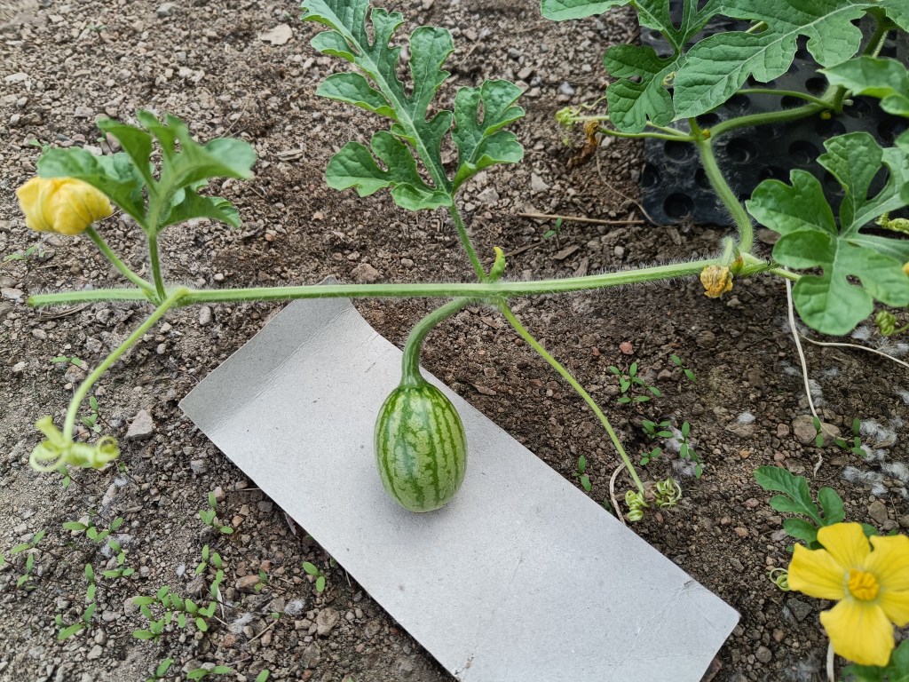 Viime vuonna Piparmintun kasvihuoneessa kasvaneesta vesimelonista jäi talteen muutama siemen. Ne viettivät talven jääkaapin hyllyllä ja pääsivät keväällä kotikasvattamon multaan.