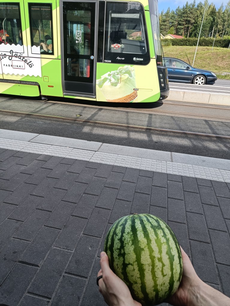 Perjantaina bongasin pienen vesimelonin, tänään se oli jo mennyttä. Siitä oli tullut isompi vesimeloni.